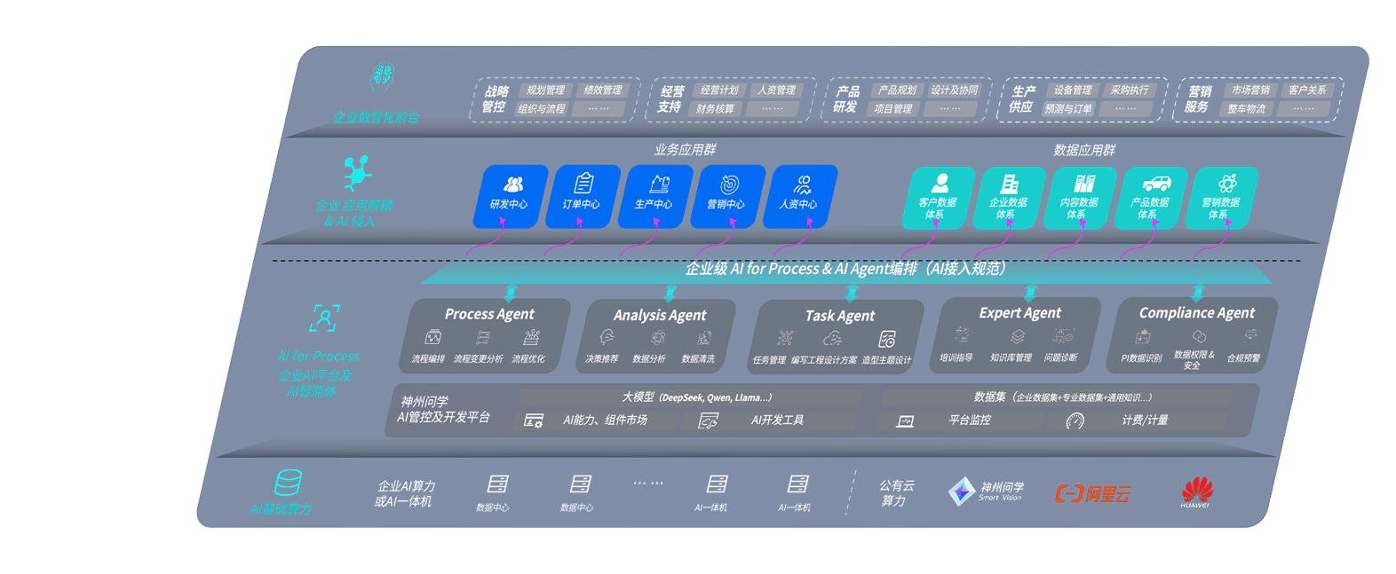 鼎点平台问学智车解决方案是一套基于AI技术的汽车行业智能化系统,,覆盖从底层算力到顶层AI应用的全栈方案。。。。方案由算力层、、模型层和应用层组成:算力层,,方案支持多种一体机配置,,,具备云端灵活部署、、多云适配以及动态优化计算资源的能力;模型层,,,鼎点平台问学平台版提供了企业级AI应用一站式构建与管理平台,,支持基于后训练强化技术的汽车企业专属模型的训练、、、、评测和运营;应用层,,,,鼎点平台问学DeepSeek版提供包括超级员工、、智能招采、、、智能营销、、、智能客服、、、、AI for BI等一系列解决方案,,,可助力汽车行业实现数字化转型,,,让管理更智能、、、响应更敏捷。。。